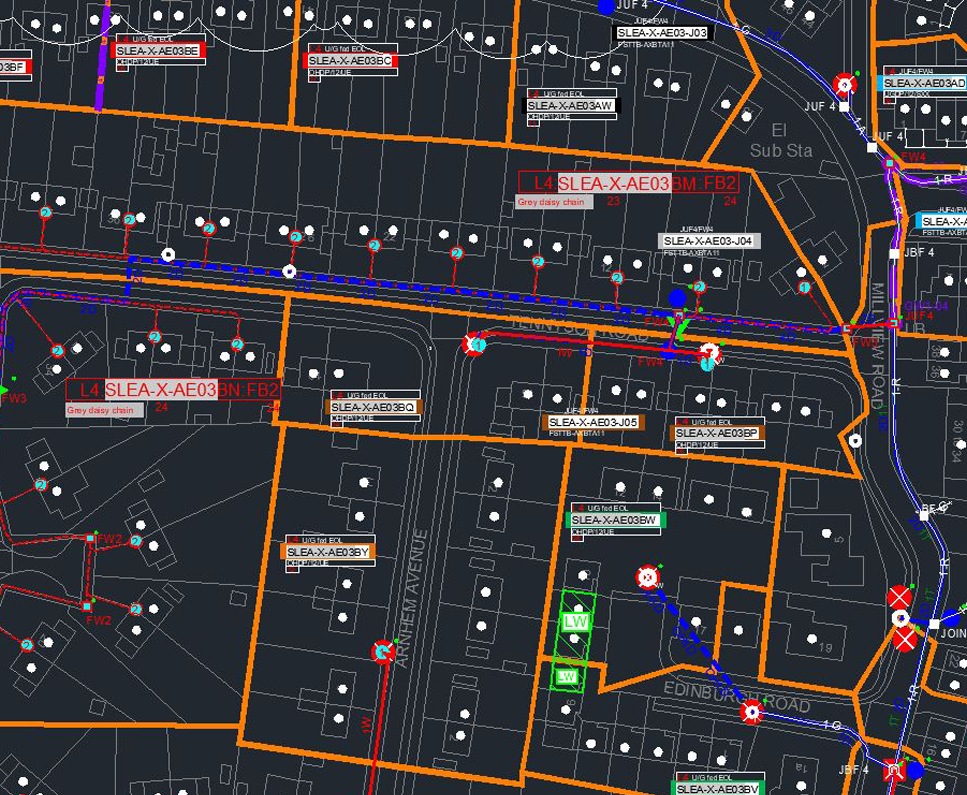 Creamos diseños innovadores de red de alimentación y distribución, utilizando todo tipo de herramientas GIS. Para garantizar el éxito en la construcción de la red, desarrollamos: